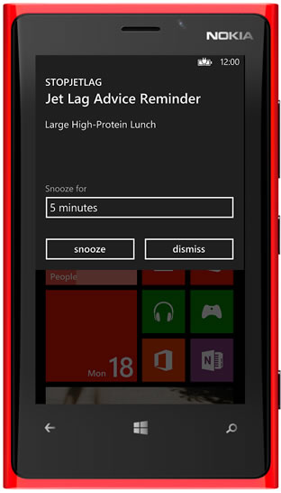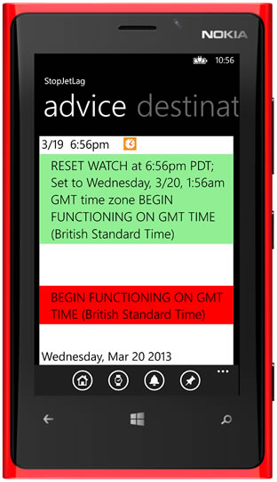 View your Stop Jet Lag Plan on your Windows™ Phone to: